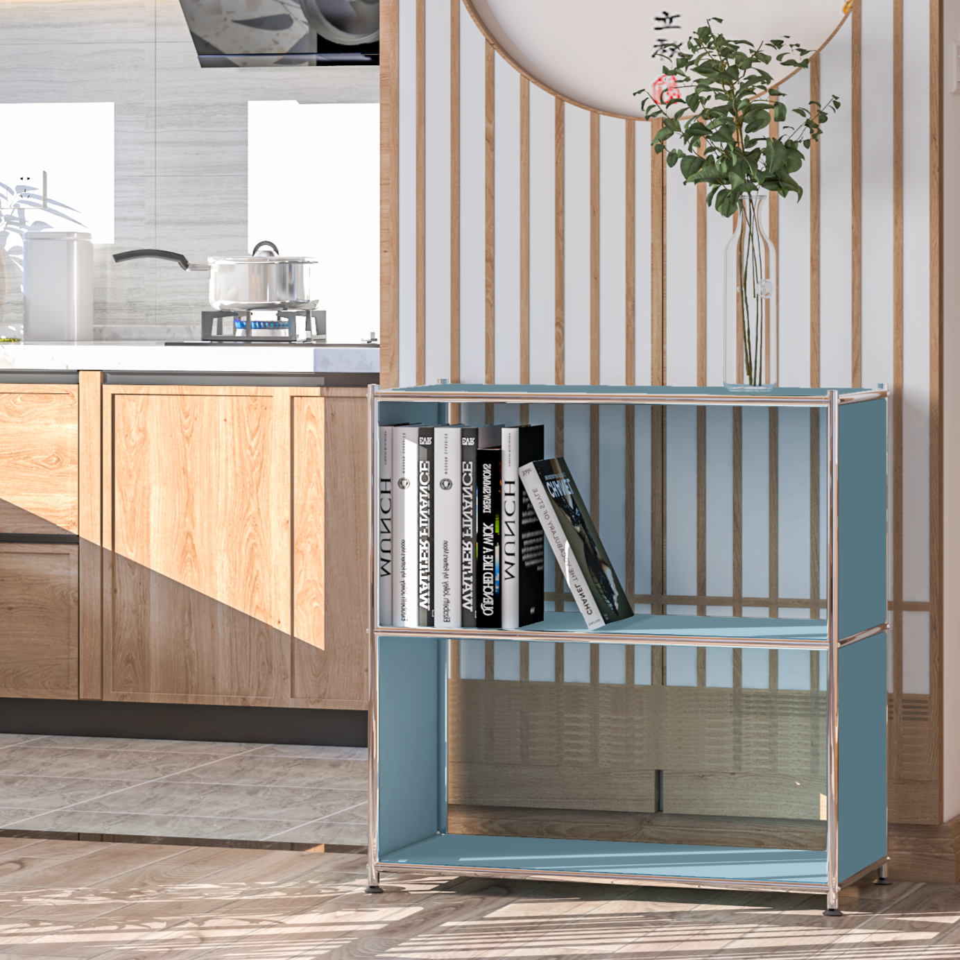 Open shelving offers a smart way to display books, plants, or collectibles in a space-efficient format.