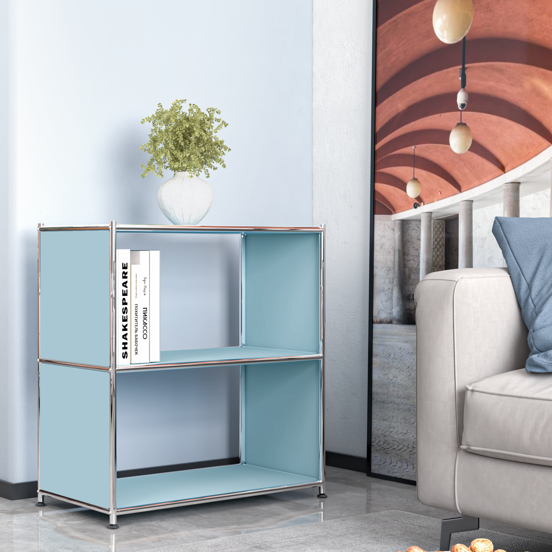 The soft, misty blue brings a calm, contemporary energy—great for serene bedrooms, creative corners, or modern spaces.