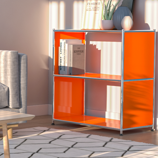 SIMPLINK Semi-Gloss Orange Open Shelf – Vibrant 2-Tier Storage for Bold and Playful Interiors - Bookcase, Showcase
